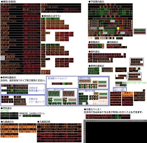 自分でやってるA列車の小型地方駅をイメージにしたものです。 使用の際はコメントしてください。 できれば、何に使用するかも教えていただけるとありがたいです。 モチーフはJR西日本全域の電光表示板です。 ATOS風の表示も入れてみようとは思いましたが、唯…